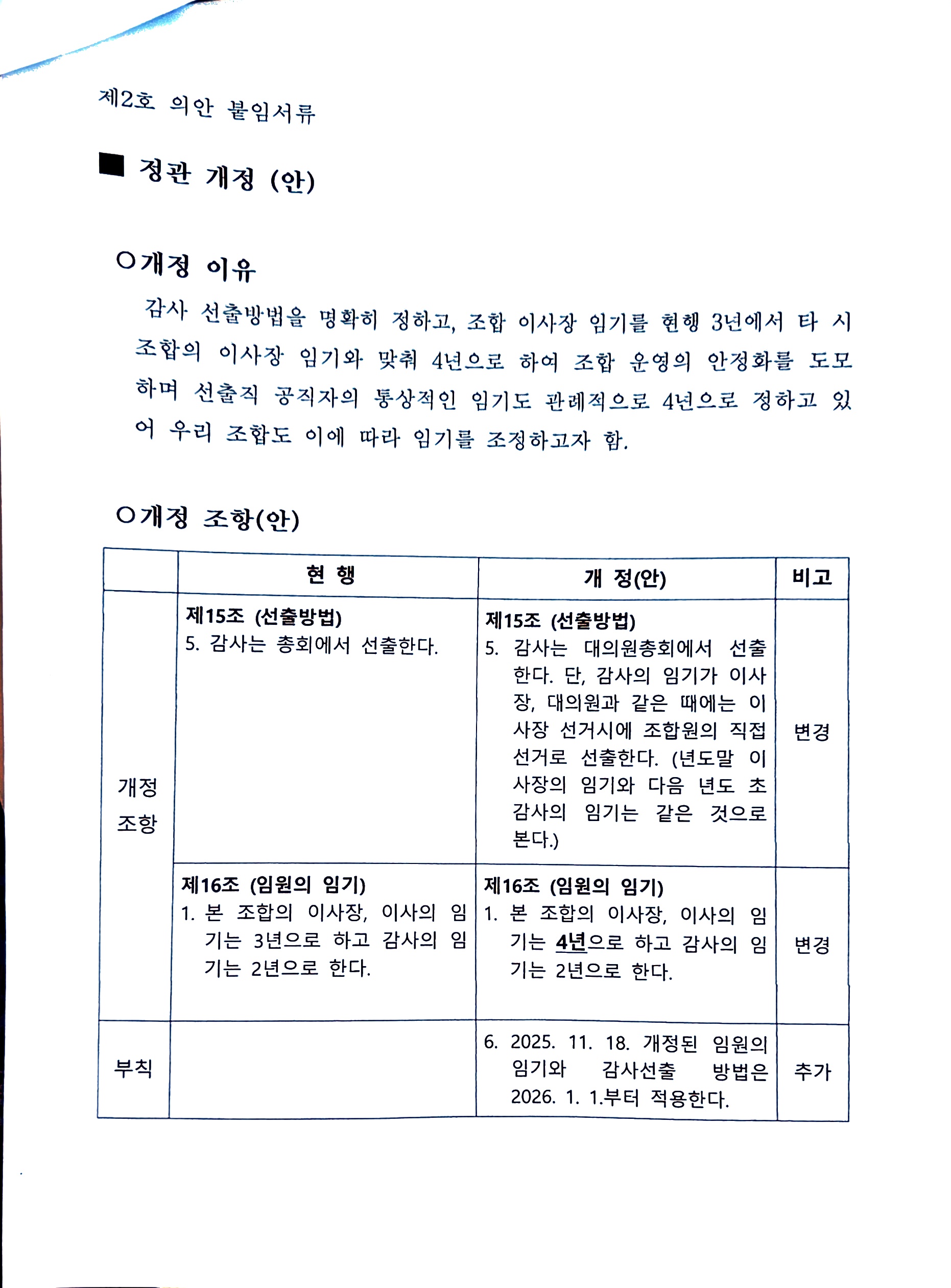 정환보 감사 제거 총회 공고(2025. 10. 20. 제4차 정기 이사회 공고 + 선거 규정)