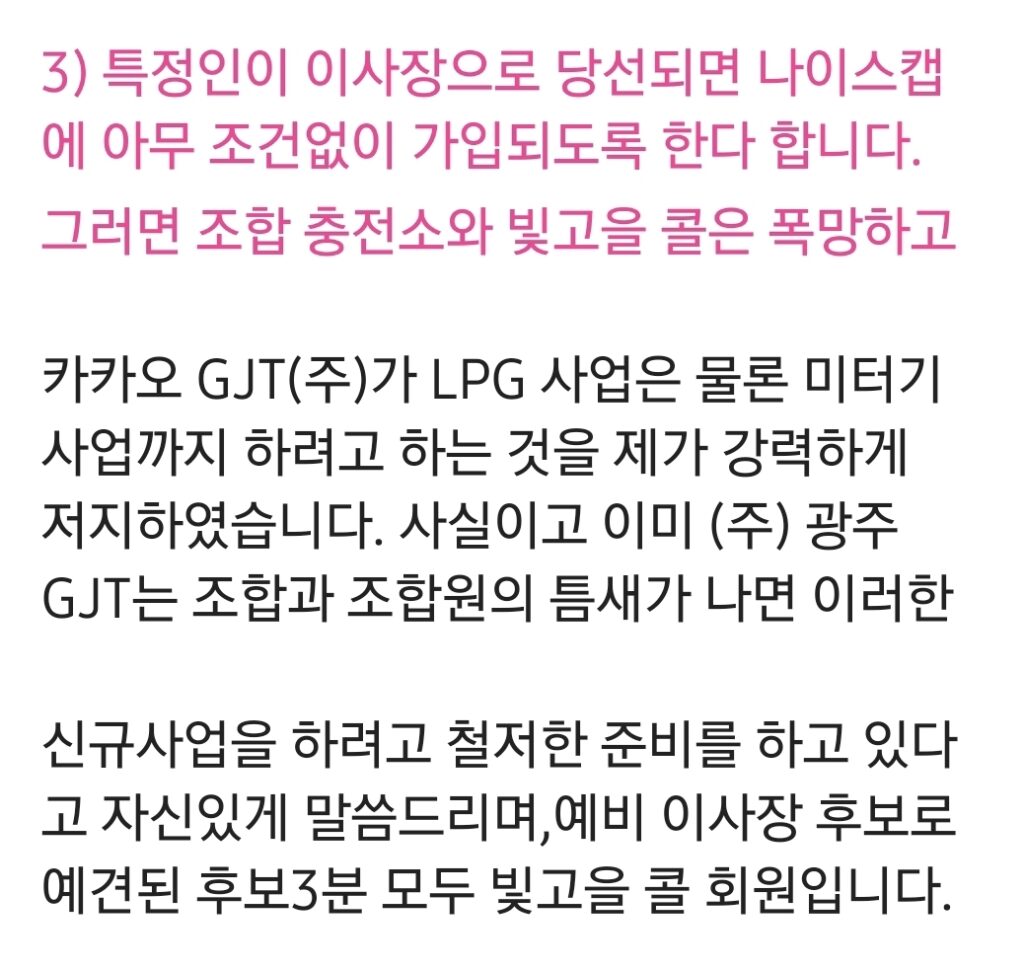 카카오 GJT(주)가 LPG 사업은 물론 미터기 사업까지 하려고 하는 것을 제가 강력하게 저지하였습니다.